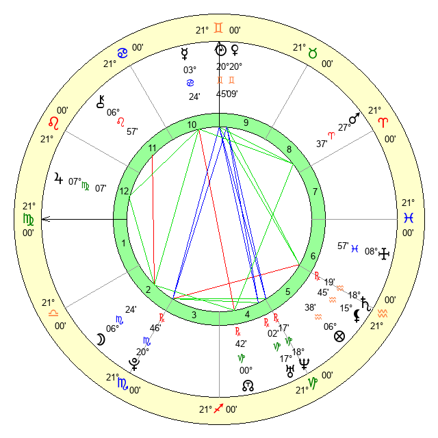 | Venus | 19 Gemini 55 | 5 Taurus 6 | 0 Leo 29 |