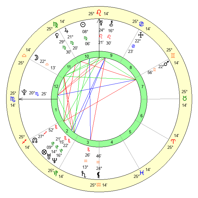 | Venus | 29 Virgo 30 | 6 Leo 41 | 9 Scorpio 56 |