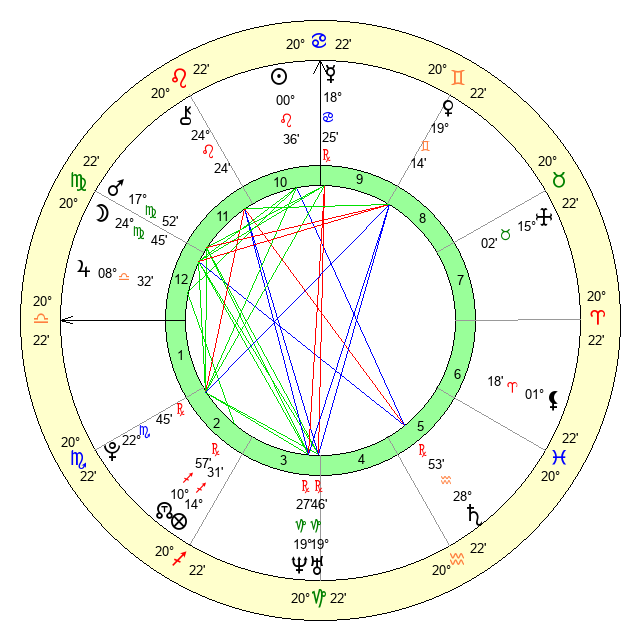 | Moon | 21 Virgo 59 | 10 Cancer 38 | 29 Scorpio 18 |