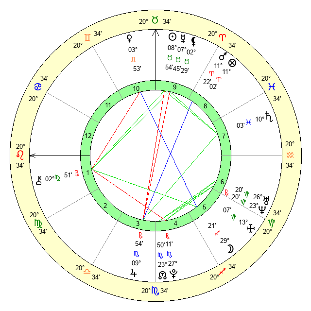 | Jupiter | 9 Scorpio 44 | 21 Gemini 2 | 6 Scorpio 9 |