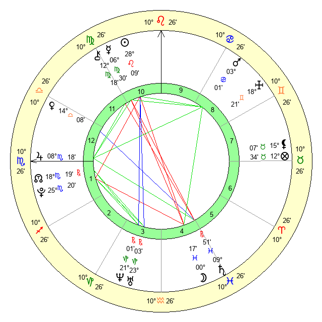 | Moon | 27 Aquarius 44 | 3 Leo 55 | 14 Aries 15 |