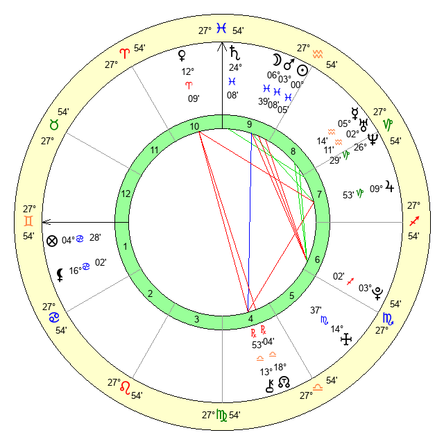 | Moon | 3 Pisces 56 | 14 Scorpio 42 | 26 Pisces 37 |