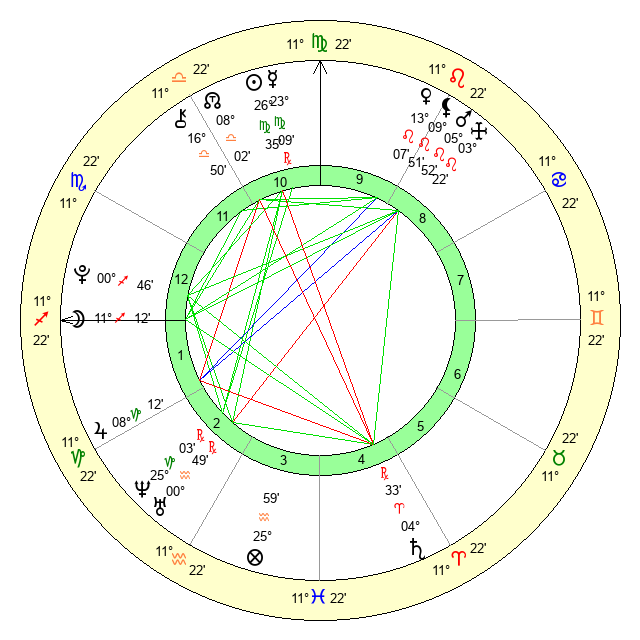 | Mercury | 23 Virgo 9 | 1 Libra 31 | 15 Libra 5 |