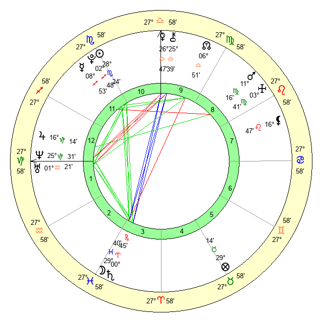 | Moon | 27 Pisces 4 | 28 Scorpio 4 | 21 Aries 16 |