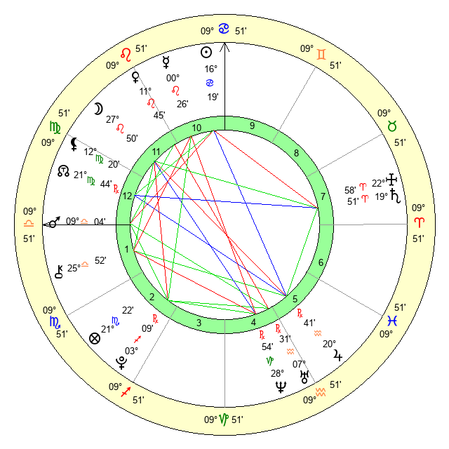 | Sun | 16 Cancer 8 | 16 Cancer 22 | 12 Leo 53 |