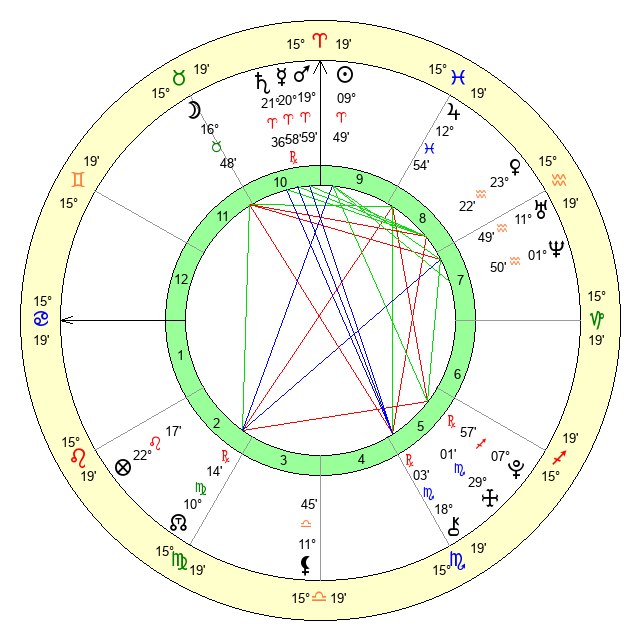 | Sun | 9 Aries 21 | 9 Aries 49 | 5 Taurus 50 |