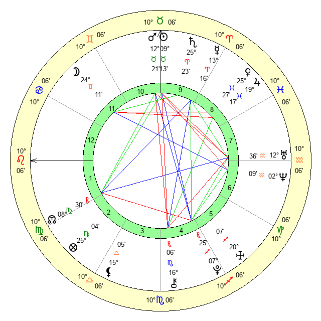 | Mars | 12 Taurus 1 | 4 Leo 48 | 1 Gemini 30 |