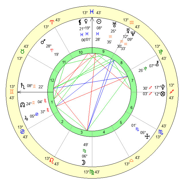 | Moon | 6 Virgo 51 | 28 Aquarius 35 | 3 Cancer 30 |
