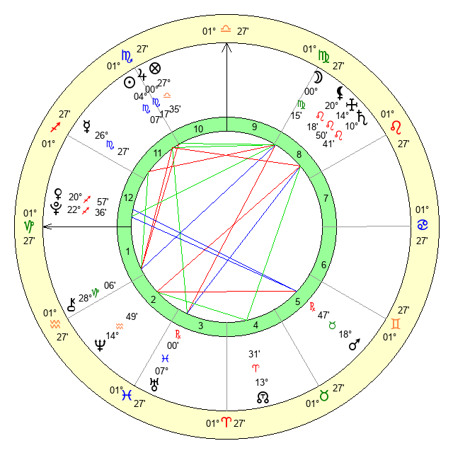 | Jupiter | 0 Scorpio 14 | 24 Cancer 46 | 4 Scorpio 33 |