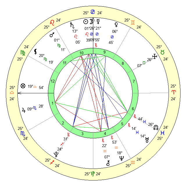 | Moon | 20 Cancer 32 | 24 Cancer 42 | 28 Pisces 41 |