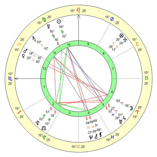 | Mercury | 16 Virgo 24 | 20 Leo 19 | 5 Virgo 23 |