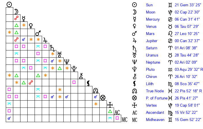 | Moon | 2 Capricorn 28 | 2 Capricorn 28 | 2 Capricorn 28 |
